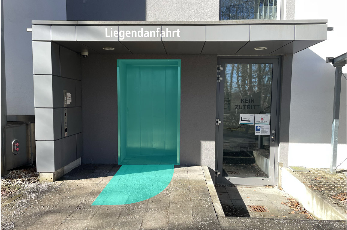 Türkis = Stufenloser Fahrstuhl zur Klinik
