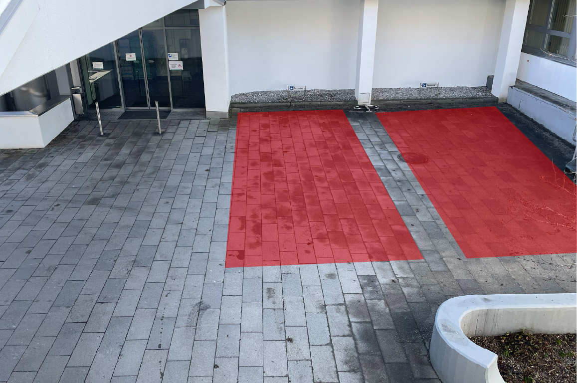 Rot = Barrierefreie Parkplätze (2x)